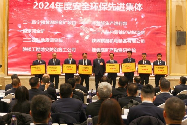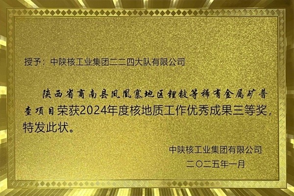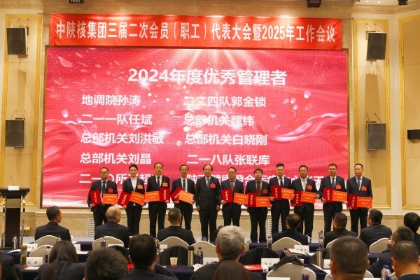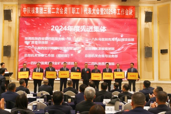 近日,中陜核工業(yè)集團(tuán)召開了三屆二次會(huì)員(職工)代表大會(huì)暨2025年工作會(huì),會(huì)上表彰了先進(jìn),公司捷報(bào)頻傳,連續(xù)榮獲多項(xiàng)榮譽(yù)!公司榮獲了中陜核集團(tuán)2024年度“創(chuàng)新創(chuàng)業(yè)獎(jiǎng)”,公司黨委書記、董事長(zhǎng)郭金鎖榮獲中陜核集團(tuán)2024年度“優(yōu)秀管理者”稱號(hào),中陜核新材料有限公司榮獲中陜核集團(tuán)2024年度“精益管理獎(jiǎng)”,地質(zhì)調(diào)查院榮獲中陜核集團(tuán)2024年度“先進(jìn)集體”和“安全環(huán)保先進(jìn)集體”,地質(zhì)調(diào)查院《陜西省略陽(yáng)縣硤口驛銅多金屬礦普查》榮獲中陜核集團(tuán)2024年度“核地質(zhì)工作優(yōu)秀成果二等獎(jiǎng)”,地質(zhì)調(diào)查院《陜西省商南縣鳳凰寨地區(qū)鋰鈹?shù)认∮薪饘俚V普查》榮獲中陜核集團(tuán)2024年度“核地質(zhì)工作優(yōu)秀成果三等獎(jiǎng)”,地質(zhì)調(diào)查院總工程師雷旺勝、中陜核新材料有限公司氧化鉬車間主任劉建文、中陜核工業(yè)集團(tuán)測(cè)繪院有限公司規(guī)劃中心副主任袁晨鑫榮獲中陜核集團(tuán)2024年度“先進(jìn)個(gè)人”稱號(hào),中陜核工業(yè)集團(tuán)測(cè)繪院有限公司副總經(jīng)理王亞光、地質(zhì)調(diào)查院項(xiàng)目負(fù)責(zé)卞利榮獲中陜核集團(tuán)2024年度“安全環(huán)保先進(jìn)個(gè)人”稱號(hào),地質(zhì)調(diào)查院《陜西省略陽(yáng)縣硤口驛銅多金屬礦普查》項(xiàng)目陳偉男、劉雷、陳輝、劉彤旭、黃家瑄,《陜西省商南縣鳳凰寨地區(qū)鋰鈹?shù)认∮薪饘俚V普查》項(xiàng)目李雷、李剛、程佳孝、馬總戰(zhàn)、張浩軒榮獲中陜核集團(tuán)2024年度“核地質(zhì)工作先進(jìn)個(gè)人”稱號(hào)。