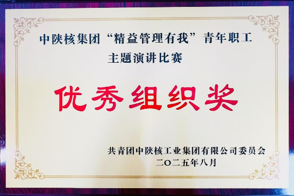 公司在中陜核集團“精益管理有我”青年職工主題演講比賽中被授予“優(yōu)秀組織獎”榮譽稱號