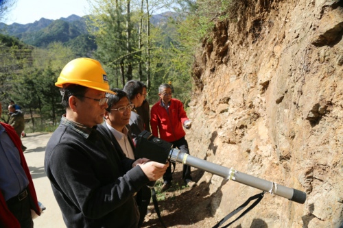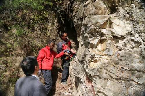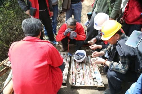 王總一行首先來(lái)到華陽(yáng)川門(mén)澗溝,實(shí)地查看了地質(zhì)剖面的測(cè)繪情況,并結(jié)合剖面圖和實(shí)際情況,指出了剖面圖中存在的問(wèn)題,提出了行之有效的解決方案。隨后,王總一行翻越泥濘陡峭的山路來(lái)到鉆機(jī)施工現(xiàn)場(chǎng),仔細(xì)查看巖芯特征,詢(xún)問(wèn)鉆機(jī)進(jìn)展情況,并根據(jù)巖芯的微觀地質(zhì)特征,提出了很多建設(shè)性意見(jiàn)。
