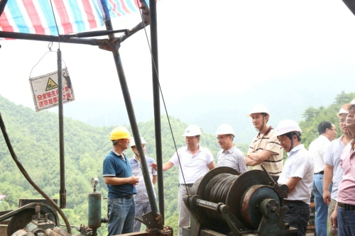 巡視組一行冒著酷暑,爬上陡峭的山體,來到靠近山頂?shù)你@探施工現(xiàn)場,現(xiàn)場了解施工進度和項目工作情況。在項目駐地,巡視組一行查看了巖心,召開了座談會,聽取了華陽川地調院項目負責康清清關于項目運作情況的匯報。