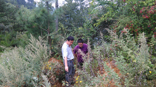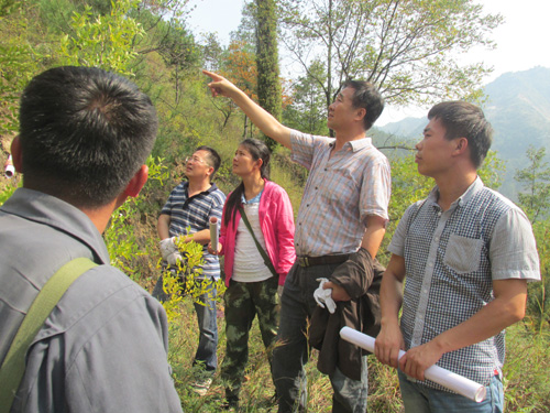 高總一行先后來(lái)到落駕河金汞銻多金屬礦預(yù)查項(xiàng)目、鎮(zhèn)安天池金鉛鋅多金屬礦預(yù)查項(xiàng)目、看山寺金鉛錫多金屬礦詳查項(xiàng)目、大佛寺地區(qū)鈾礦地質(zhì)調(diào)查項(xiàng)目、雙槽地區(qū)鈾礦地質(zhì)調(diào)查項(xiàng)目等5個(gè)野外項(xiàng)目,親自為大家送去了月餅、水果等慰問(wèn)品。盡管各項(xiàng)目工作區(qū)地勢(shì)險(xiǎn)峻、山高路陡、道路泥濘、濕滑,但為了切實(shí)了解野外施工現(xiàn)場(chǎng)情況,高總一行依然抓著野草藤條,冒雨趕往遠(yuǎn)離駐地的每一個(gè)野外工作區(qū)、槽探、鉆探施工現(xiàn)場(chǎng)進(jìn)行實(shí)地踏勘,了解項(xiàng)目進(jìn)展情況,查看野外地質(zhì)資料,現(xiàn)場(chǎng)聽(tīng)取各項(xiàng)目負(fù)責(zé)關(guān)于項(xiàng)目概況、工作進(jìn)展、現(xiàn)階段存在問(wèn)題及后續(xù)工作安排的匯報(bào)。