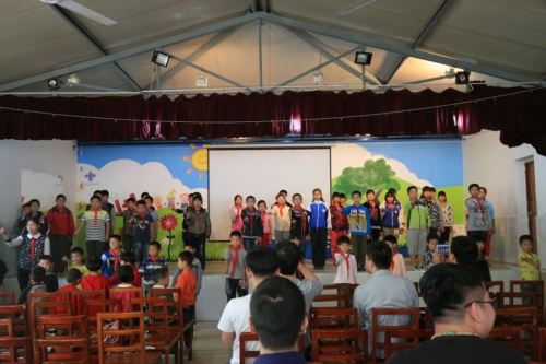 此時已是中午,大孩子們放學(xué)歸來,列隊走進(jìn)活動大廳,為我們表演了手語操《感恩的心》,大家伴著歌曲一起哼唱,愛與感恩,將我們緊緊相連。