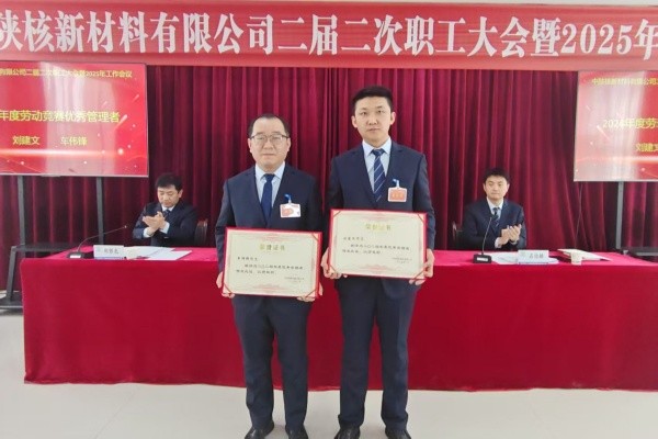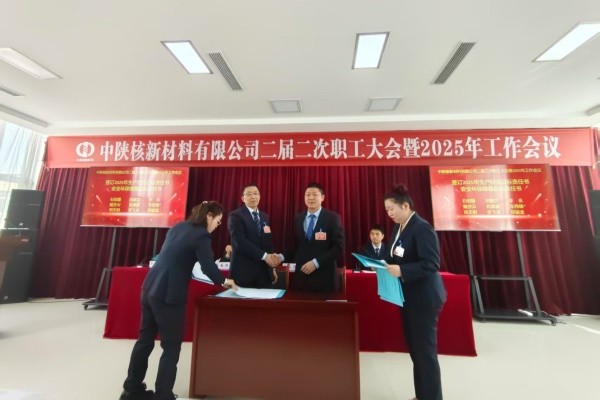 2月8日,中陜核新材料有限公司圓滿召開二屆二次職工大會暨2025年工作會議。公司黨委副書記、總經(jīng)理王得權(quán),黨群工作部兼行政人事部部長方小龍、經(jīng)營發(fā)展部部長王文波一行到會指導(dǎo)。