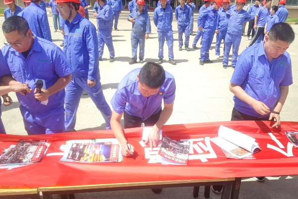 在橫幅簽名環(huán)節(jié),全體干部職工依次在 "人人講安全、個個會應(yīng)急——查找身邊安全隱患" 主題橫幅上鄭重簽下姓名,以筆墨鐫刻對安全生產(chǎn)的責(zé)任承諾與擔(dān)當(dāng)意識。簽名儀式結(jié)束后,大家有序領(lǐng)取安全宣傳手冊、應(yīng)急知識圖解等資料,讓安全理念隨資料傳遞至工作生活各場景。