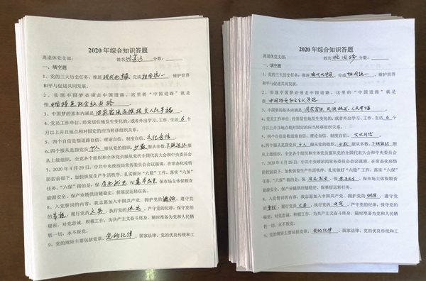 知識答題強黨性。為加深對黨的知識理論、方針政策的了解,離退休黨支部于6月20日---7月6日,在支部黨員中開展以《中國共產黨章程》、十九大報告、《中國共產黨支部工作條例(試行)》、習近平總書記來陜考察時的重要講話重要指示精神等為主要內容的知識答題活動。支部廣大黨員積極響應,認真作答,共有160余名黨員參與了答題活動,營造了良好的學習氛圍。