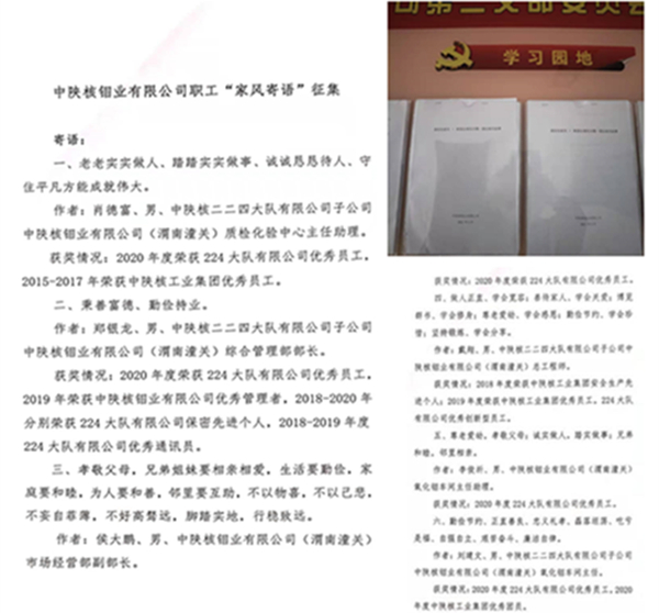 深入開展“德潤三秦”家風建設活動。鉬業(yè)公司黨支部圍繞“立家風、踐家風、書家風、議家風、誦家風、揚家風”六個方面開展“德潤三秦”家風建設活動,向廣大黨員干部職工發(fā)出倡議;組織廣大黨員職工深入開展“家風寄語”“揚優(yōu)良家風?樹國企清風”專題家風建設征集活動,增強了倡廉潔、重家風的思想認同、文化認同和情感認同,用良好家風支撐清正廉潔的黨風;組織全體黨員觀看了陜西省紀委監(jiān)委“德潤三秦”好家風系列微視頻展播作品,教育警示黨員干部堅守黨性立場和黨性原則,以廉守身、以廉守家、以廉守業(yè),厚植崇廉尚德的家庭美德。