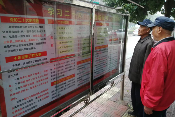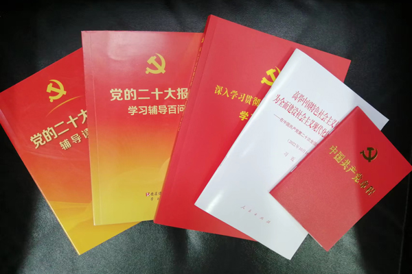 離退休(待崗)職工管理中心第一黨支部為本黨支部黨員購買發(fā)放了《高舉中國特色社會(huì)主義偉大旗幟為全面建設(shè)社會(huì)主義現(xiàn)代化國家而團(tuán)結(jié)奮斗:在中國共產(chǎn)黨第二十次全國代表大會(huì)上所作的報(bào)告/習(xí)近平》《黨的二十大報(bào)告輔導(dǎo)讀本》《黨的二十大報(bào)告學(xué)習(xí)輔導(dǎo)百問》《深入學(xué)習(xí)貫徹黨的二十大精神學(xué)習(xí)筆記》等書籍,并在會(huì)上進(jìn)行了集中學(xué)習(xí),著重對“如何理解黨的二十大的重大意義”、“如何理解新時(shí)代新征程中國共產(chǎn)黨的使命任務(wù)”、“如何理解中國式現(xiàn)代化”等進(jìn)行了深入解讀,以及探討交流,促進(jìn)消化理解。此外,離退休(待崗)職工管理中心第一黨支部還開辦了黨的二十大精神學(xué)習(xí)專題櫥窗欄進(jìn)行廣泛宣傳,讓原文、金句融入小區(qū)日常環(huán)境,形成了濃厚的學(xué)習(xí)氛圍,引導(dǎo)全員領(lǐng)會(huì)黨的二十大精神、把握學(xué)習(xí)要點(diǎn)、明確努力方向。