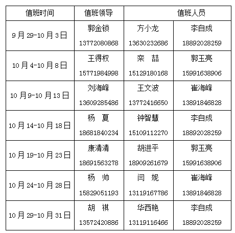 3.值班人員值班期間手機(jī)24小時(shí)開通。